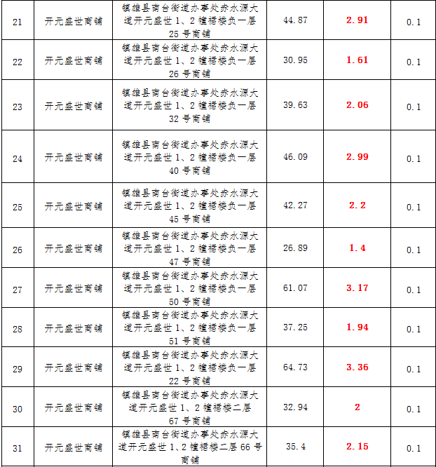 (一)拍租鎮(zhèn)雄發(fā)展集團(tuán)有限公司國有門面3年期使用權(quán),詳見下表: